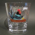 ロックグラスを片手に葉巻をくゆらすCOCKです。アンティークのグラスにもよく登場する「ニワトリ」をハンドペイントによるエナメル彩でカクテルグラスに描きました。鉱物性の絵具と筆で描き、窯で焼きつける工程を何度も繰り返して完成させます。もちろん洗っても落ちません。(食洗機は不可))